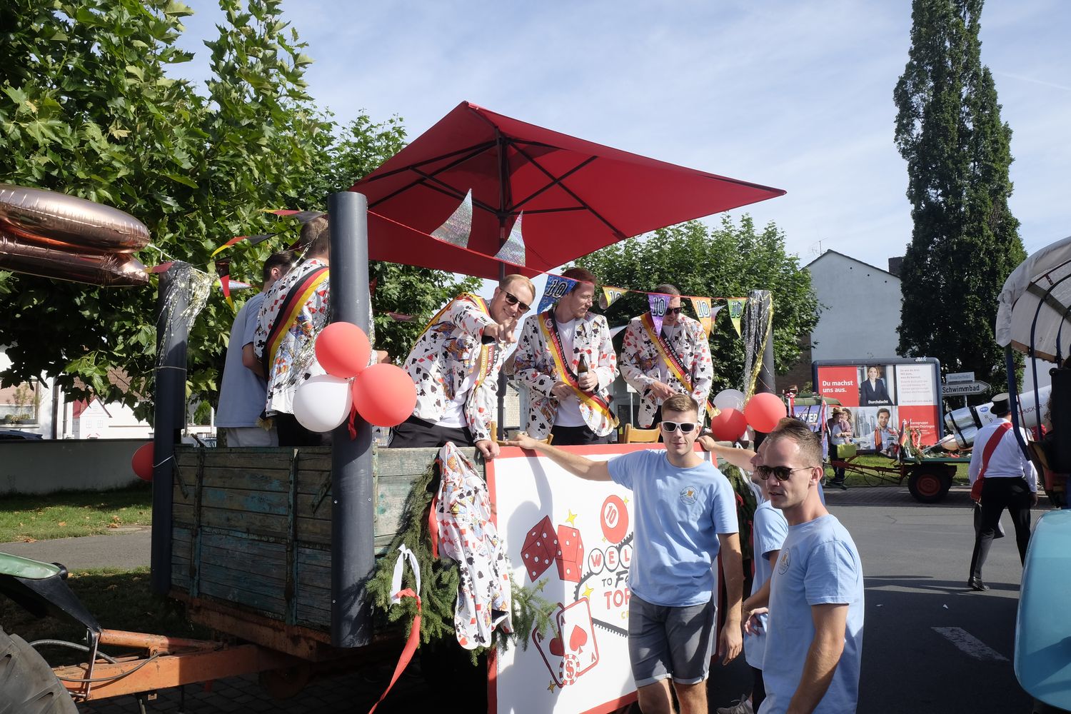 Andreas Lüer und seine Kerweborsch beim Mädcherholle, dem Kerweumzug sowie dem Umzug zum Feuerwehrfest.